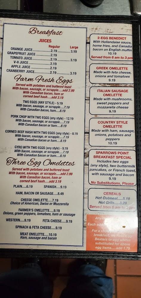 Welcome to Sparrows Point Restaurant, your go-to diner nestled at 4414 North Point Blvd, Sparrows Point, MD. Enjoy a delightful menu featuring American classics with an emphasis on local specialties, perfect for breakfast, lunch, or dinner. Our cozy, relaxed atmosphere is ideal for solo diners and groups alike, with amenities including wheelchair accessibility, takeout options, and outdoor seating. Savor our excellent coffee and desserts, or grab a quick bite from our healthy selections. With reservations accepted and a kid-friendly menu, we make dining easy and enjoyable for everyone. Experience the charm of Sparrows Point today!